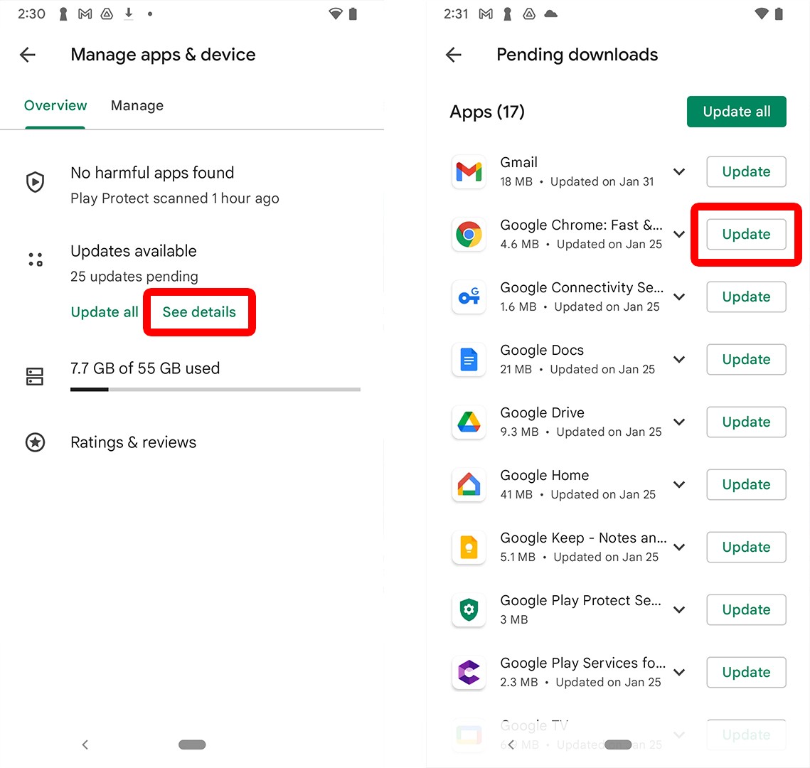 To update the Google Chrome app on an Android device, open the Play Store app and tap your profile icon in the pinnacle-right corner. And then select Manage apps & devices and tap Run across details nether Updates available. Finally, scroll downward and tap Update next to Google Chrome.